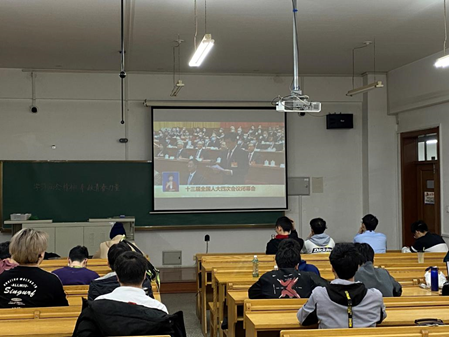 最后,同学们积极踊跃发言,纷纷表达自己观两会后的感想,表明一定要深入学习两会精神,提高自身理论水平,将自身发展与时代潮流相结合,在之后的学习生活中贯彻落实两会精神,用实践加深理解,以行动诠释精神,坚持拥护党的全面领导,为中华民族伟大复兴和实现社会主义现代化贡献出自己的力量!