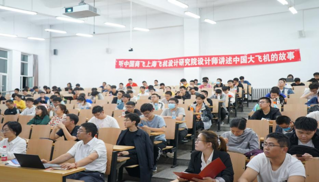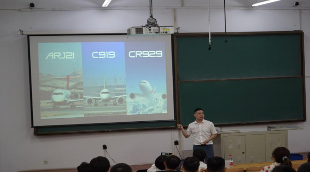 “大型客机研发和生产制造能力是一个国家航空水平的重要标志,也是一个国家整体实力的重要标志。”中国商飞是实施国家大型飞机重大专项中大型客机项目的主体,作为中国商飞员工易子淳老师和傅璟裔老师向同学们介绍了国产大飞机研制的最新进展,并结合个人成长经历,与同学们分享了工作中的感悟,讲述了属于自己的中国大飞机故事。在分享过程中,老师提到了商飞工作观念的转变,从最初的“造不如买,买不如租”转变为如今的“租不如买,买不如造”,通过几代航空人近半个世纪的接力,新一代大飞机人的十余年攻坚,终于托举起了中国自己的大客机。同时,老师还就航空人工作过程中精益求精、要求零失误的工作态度做出了阐述,对同学们的学习生活提出了更高的要求。