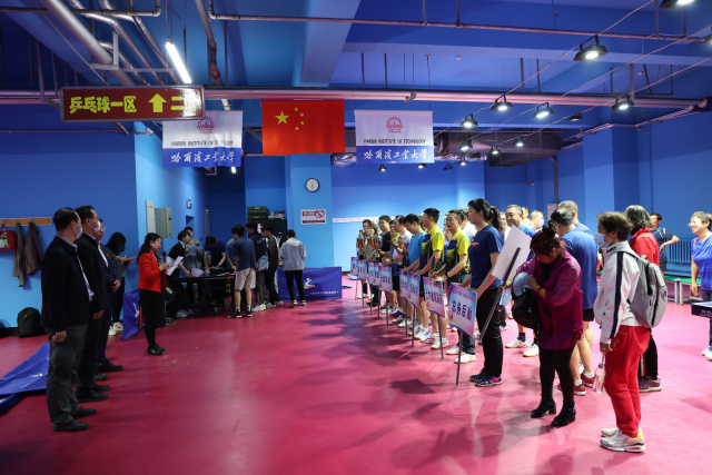 开幕式上,李敬伟首先代表校工会致辞,感谢澳门永利唯一官网304工会和教职工乒乓球协会对本次赛事的承办,感谢各基层工会的精心组队和积极参与,希望各位老师能够通过比赛强体魄、健身心,以健康的身体状态面对工作、生活,以饱满的精神面貌迎接党的二十大胜利召开。刘挺在致辞中感谢校工会一直以来对澳门永利唯一官网304工会发展的大力支持,感谢校教职工乒乓球协会对本次赛事的辛勤付出,讲述了自己从事乒乓球的运动经历以及和老师们同台竞技的美好回忆,希望借助本次比赛充分展示哈工大教职工的风采,同时欢迎大家到澳门永利唯一官网304进行跨学科交流,并预祝比赛圆满成功。