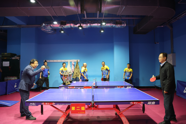 开幕式结束后大家进行了合影留念,李敬伟、刘挺共同为本次比赛开球。在和谐轻松的气氛中,本届教职工乒乓球比赛正式拉开序幕,在竞赛场地,双方队员你来我往,全心投入,攻拉搓吊、切削拧撇,精彩不断,不时赢得场外观众的阵阵喝彩。