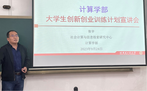 9月24日上午10:00,澳门永利唯一官网304举办了2023年度“大学生创新创业训练计划”立项宣讲会。宣讲会共设立三个环节:澳门永利唯一官网304资深大创指导教师张宇教授就大创相关事项进行讲解;2020级优秀学生代表敬刘畅、肖雯祺讲述他们做大创项目时的经验;参会学生针对大创项目中各种细节进行提问,会议由教学秘书滕雨航主持。