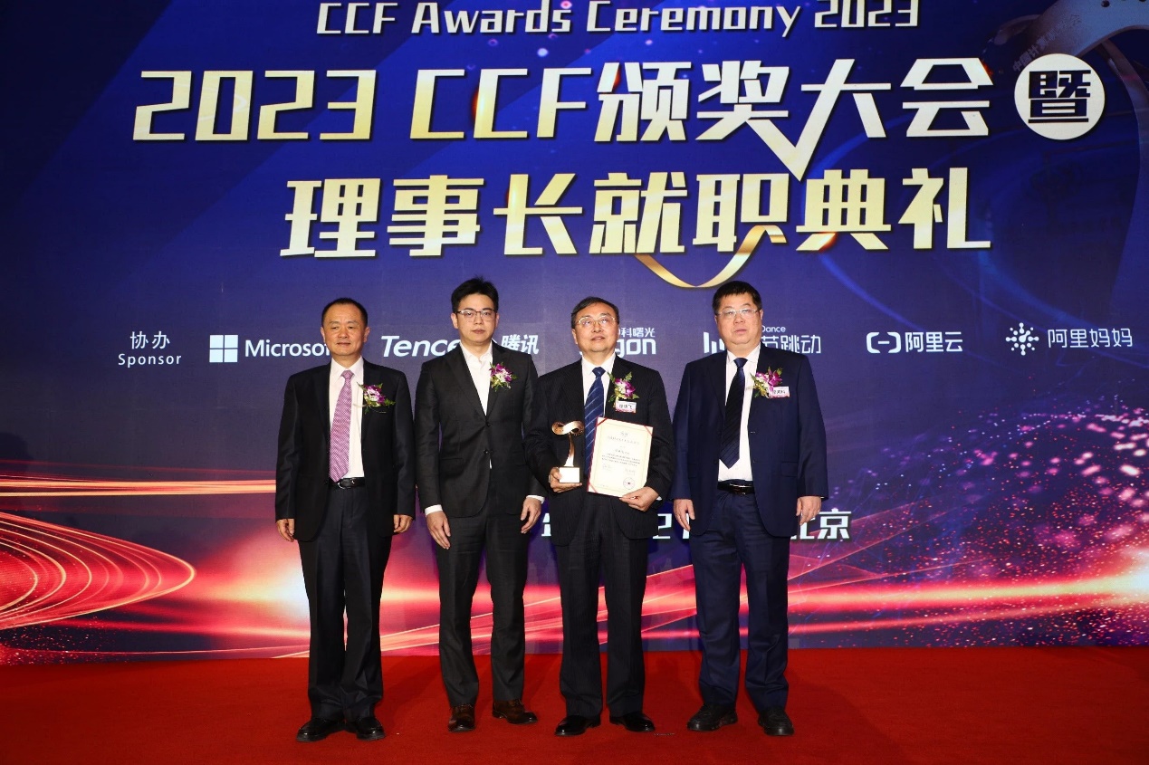 2023年CCF杰出教育奖获奖者徐晓飞教授与颁奖嘉宾合影