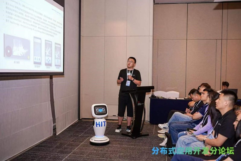 会上,娄久老师和2021级本科生陈一豪(大会唯一本科生讲者)详细地介绍了由他们四名本科生组成团队所开发的轮式机器人项目成果。他们从机器人控制和上位机应用开发,到单体机器人自主导航,逐步完成ROS系统替代,实现了整个轮式机器人软硬件全部国产化,同时基于HarmonyOS分布式软总线特性实现了多机器人间的通信与调度。陈一豪和他们团队的出色工作以及哈工大将“国产自主”元素融入本科生教学、融入基础学科人才培养的教学模式,赢得了参会人员的一致好评。