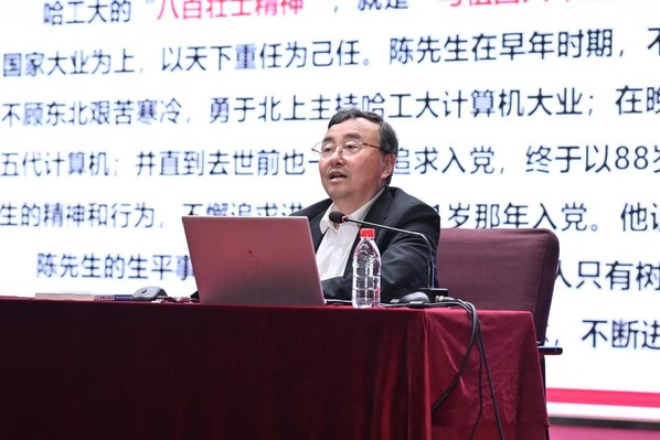 随后,徐晓飞教授介绍了计算机专业创始人之一陈光熙先生扎根东北、爱国奉献、艰苦创业的辉煌一生,以及自己与陈光熙先生相处中印象最深的二三事,由此凝练出“光熙精神”的深刻内涵和广泛影响。他指出,陈光熙先生留给我们的不仅仅是一个专业,更重要的是一种“光熙精神”,那就是“规格严格、功夫到家的哈工大作风,求实创新、探索进取的勇于拼搏精神,正直坦诚、宽以待人的优秀品格,诲人不倦、甘为人梯的高尚情操”。“光熙精神”不仅是陈光熙先生个人成就和精神品质的凝练,更是以陈光熙先生为代表的哈工大计算机专业老一辈教师所形成的人格和精神。