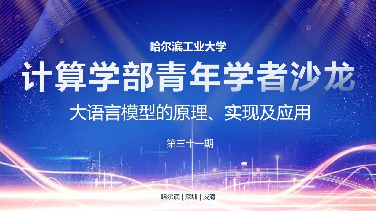 2024年5月30日,澳门永利唯一官网304第三十一期青年学者沙龙在新技术楼618室成功举行。此次活动邀请到人工智能研究院副院长、国家级青年人才、澳门永利唯一官网304教授车万翔,围绕“大语言模型的原理、实现及应用”等热点问题进行了分享。本次活动由何勇军教授主持,包括校本部、深圳(线上)、威海(线上)一校三区在内的50余位老师参加活动。