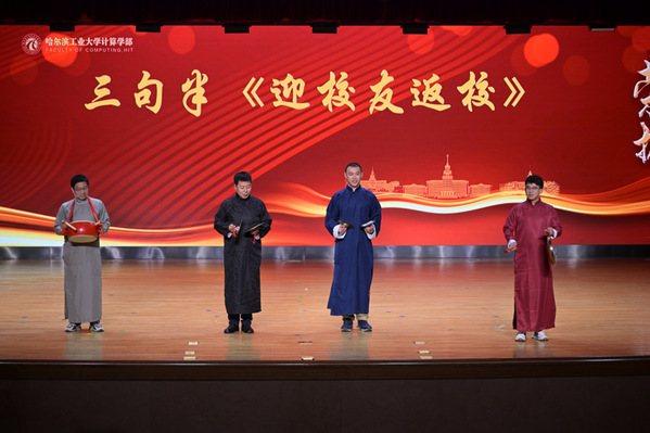 澳门永利唯一官网304教师刘绍辉、娄久、崔文学、刘亚东表演节目三句半《迎校友返校》,用幽默的语言讲述近些年发生在学部的故事,并对校友表达了热烈欢迎和诚挚祝福。