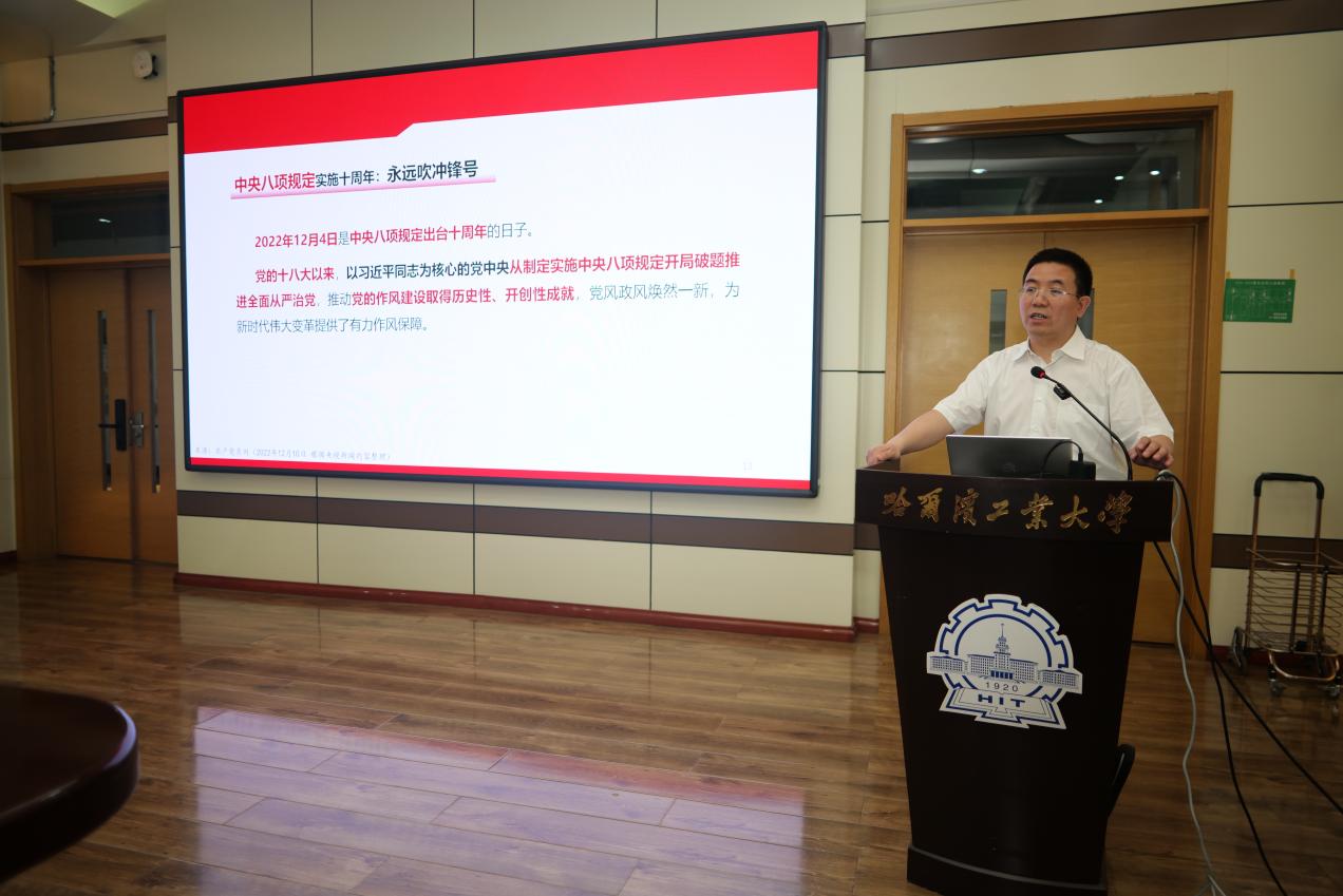 随后,邬向前为大家讲授《心存敬畏正心明道 清风护航行稳致远》专题党课。他指出,全面从严治党是党的长期战略、永恒课题,全体纪检委员务必知纪明纪守纪,并结合《中国共产党章程》《中国共产党纪律处分条例》《中国共产党廉洁自律准则》以及时代楷模的现实案例深入解读了廉洁的深刻内涵。