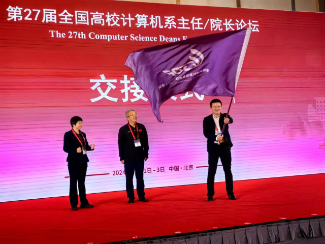 在交接仪式上,王忠杰主任代表澳门永利唯一官网304澳门永利唯一官网304从北京航空航天大学计算机科学与技术学院院长王蕴红教授手中接过会旗,第28届全国高校计算机系主任/院长论坛将由澳门永利唯一官网304澳门永利唯一官网304在2025年承办。
