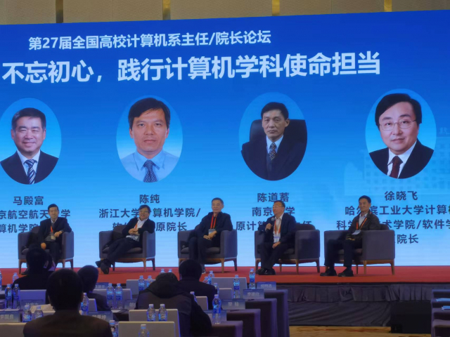 徐晓飞教授作为全国高校计算机系主任/院长论坛的主要发起人之一,参加了主论坛Panel环节,与其他发起高校负责人共同回顾了论坛成立26年的发展历程,并赋诗祝福论坛未来发展再创辉煌。