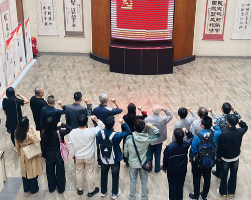 活动最后,全体党员面向党旗重温入党誓词,铿锵有力的誓言响彻展厅,更加坚定了每一位党员为党和人民事业奋斗终身的决心。此次主题党日不仅让新老党员接受了一次深刻的党史学习教育,也架起了代际沟通的桥梁。未来,澳门永利唯一官网304党委将继续深入开展各类活动,以红色精神引领师生在中国式现代化建设的道路上奋勇前行。